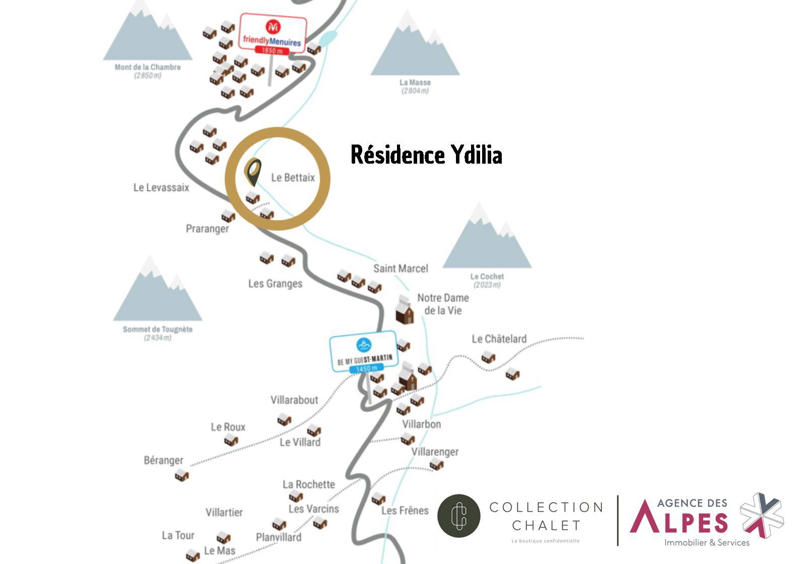 Located in the hamlet of Bettaix, in Saint Martin de Belleville, Ydilia is made up of several large accommodations.The nearest chairlift is approximately 300m away from the residence.