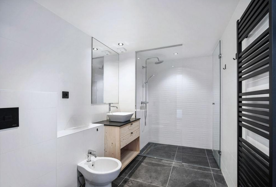 Independent bathroom (sink, shower, heated towel rail, toilet)